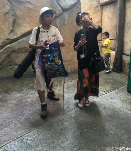 工作人员帮张柏芝拿着东西。
